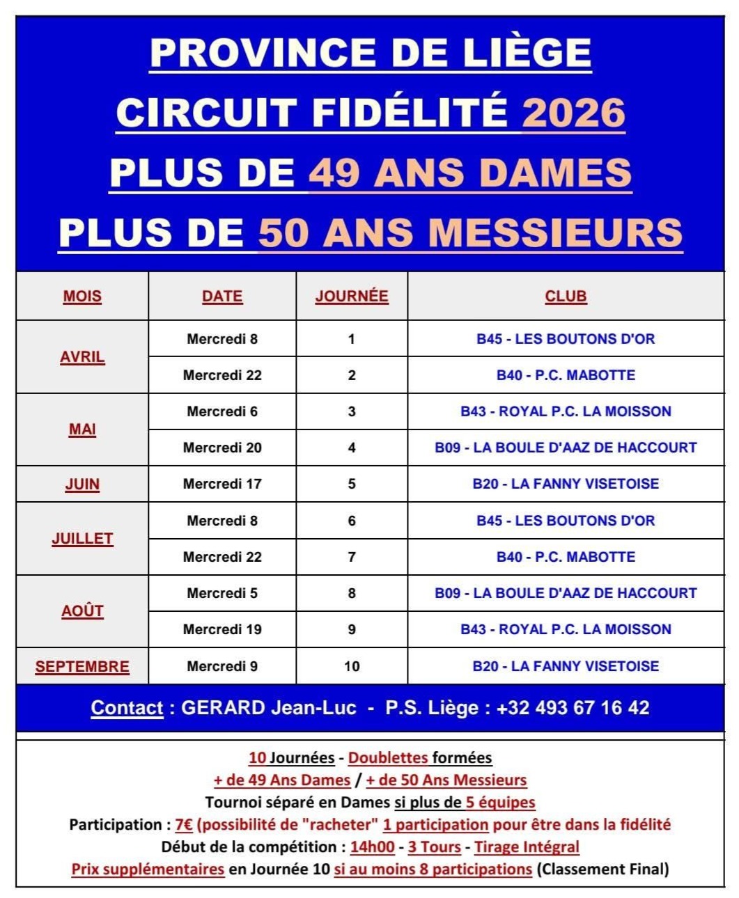 DATES A RETENIR > PROVINCE de LIEGE > CIRCUIT FIDELITE 2026 > + de 50ans DAMES et + de 50 ANS HOMMES