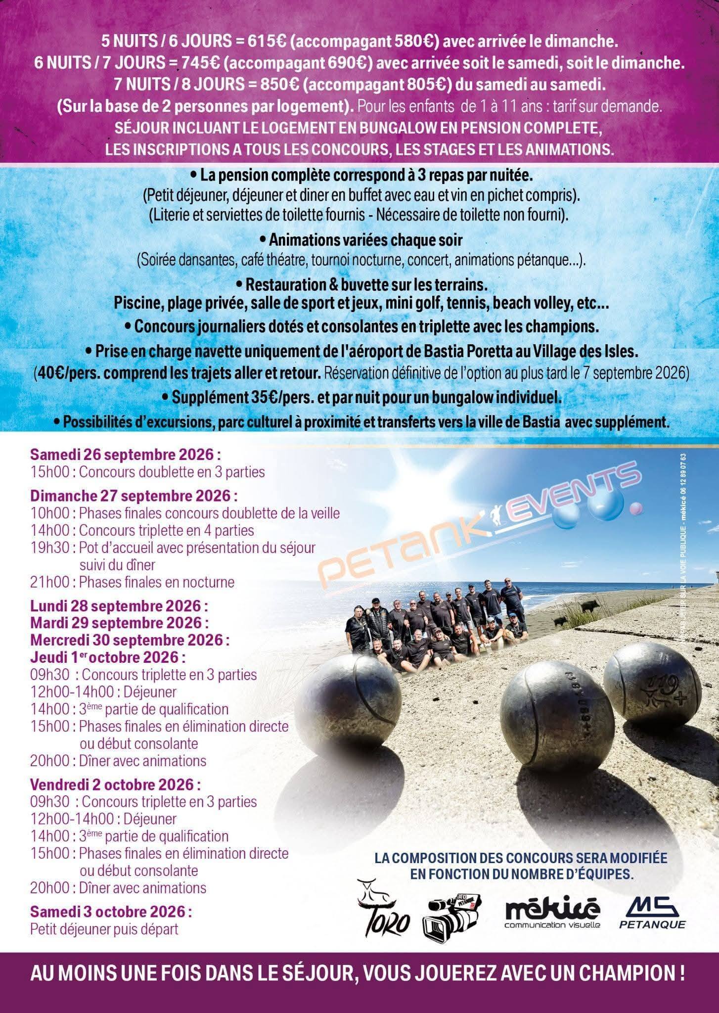 Du 27 SEPT. au 2 OCT. 2026 > CHAMPIONS FAMILY > PETANK EVENTS > SEJOUR PETANQUE FESTIFS > A TAGLIO