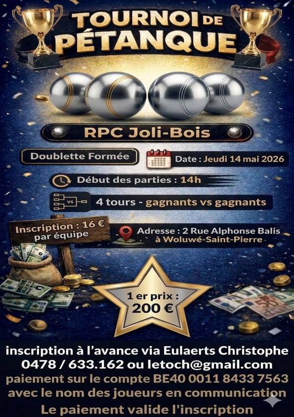 Article suivant : Le 6 JUIN 2026 > DOUBLETTES MIXTES - En Poules > 1er OPEN 2026 > AU RAVEL , Rue Liénart QUAREGNON