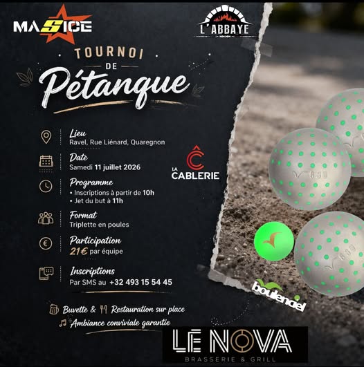 Les 20 juin 2026 ( Doublette en Poule) et 11 JUILLET 2026 (Triplette en Poule) 1er TOURNOI D' ETE au RAVEL , Rue Liénard QUAREGNON